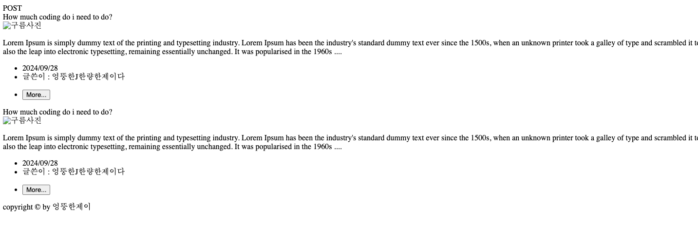 이번 시간에는 컨텐츠 부분 즉 POST 글의 리스트들을 보여주는 부분을 해보도록 할께요
